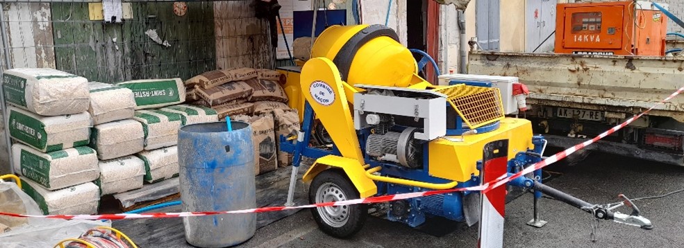 Gros œuvre : dalles écologiques, murs terre crue (Pisé)